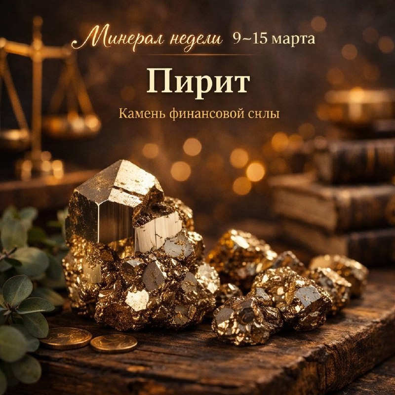 Неделя личной финансовой силы. Минерал недели Период: 9 марта по 15 марта Пирит Это неделя про личную ценность. Про деньги через проявленность. Про смелость заявить о себе. После стабилизации важно не застрять в спокойствии. Потому что март всё-таки месяц движения. И с 9 по 15 число энергия усиливается. Могут появляться ситуации, где нужно отстоять цену, обозначить границы, принять более масштабное решение. Пирит камень финансовой силы. Но не агрессии. Он помогает включить внутренний стержень, не скатываясь в давление. Это минерал людей, которые готовы выйти из тени и перестать занижать себя. Что он несёт в этот период: • уверенность в переговорах • способность говорить о деньгах спокойно • усиление личного магнетизма • смелость поднимать чек • включение энергии масштабирования. Эта неделя может дать возможность заработать больше. Но только если вы не уменьшите себя в последний момент. Как работать с пиритом: Держите его при себе в дни, когда обсуждаете стоимость, принимаете реше