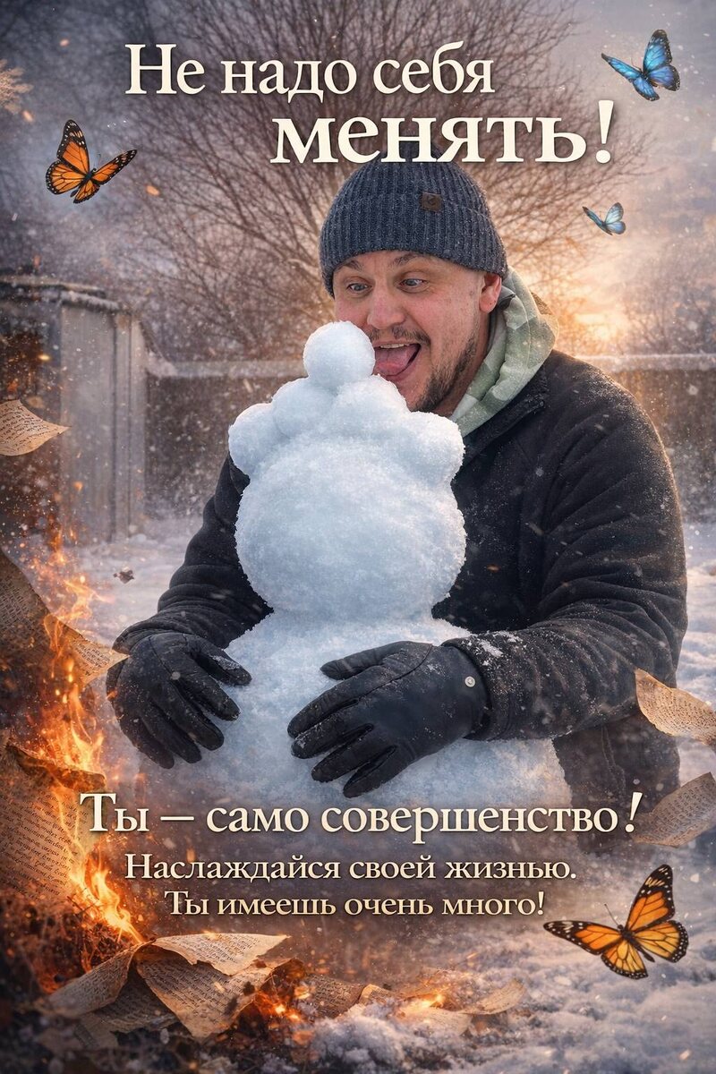 ✨ Самый главный инсайт, который сегодня пришел (а приходит он ко мне регулярно). Вот так вот просто. Ты — совершенство уже сейчас. Это не аффимирация (утверждение), это не аутотренинг (убеждение), и это даже не вера. Это факт. Заходишь в ютуб, и: — чтобы заработал денег, нужно понять эту причину; — чтобы похудеть, надо делать эти три шага; — чтобы быть счастливым в отношениях, женщина/мужчина должна/ен. И так далее. Никто никому ничего не должен. Вы/я/мы совершенны. В том виде, что сейчас: толстые, худые, инвалиды, бедные и богатые, счастливые и несчастные. Мы совершенны здесь и СЕЙЧАС. Никуда не надо идти. 🙏 Представьте: вы пришли в кино. Там сцена, когда главного героя пытают. Боль, кровь, слюни, сопли. А вы такой: не, ухожу с фильма, там нет бабочек. Так на афише фильм про Героя. Про бабочек — в соседнем зале. Не надо переписывать сценарий. Выйди в другой зал и смотри ВВС «мир бабочек». Или наслаждайся становлением Героя. Борись, сражайся. Ты хочешь этого. Но менять себя не надо. Д
