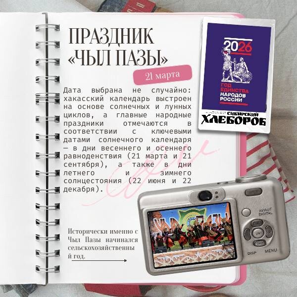 2026 год объявлен Годом единства народов России по решению президента РФ Владимира Путина. В этом году пройдут различные мероприятия, акции, конкурсы в поддержку единства народов. Например, мы решили рассказать о том, что у разных народов есть свои календари праздников, которые отражают традиции, обычаи и события, связанные с природой, историей и культурой. " Календарь народов России" - интернет проект, рассказывающий о праздниках народностей Красноярского края. А так как Ужур у нас основан хакасами, мы расскажем о празднике «Чыл пазы» (Новый год), который пройдёт 21 марта.