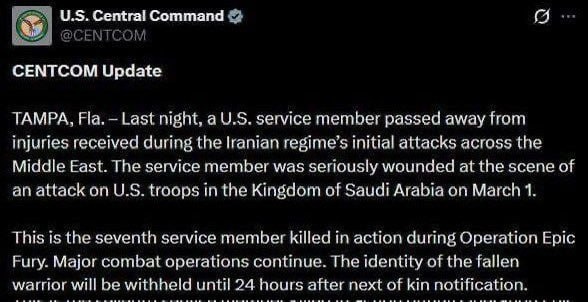 Pentagon admit another service member killed by 'Iranian regime attacks