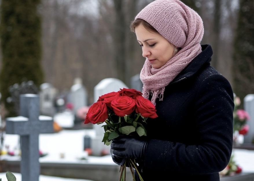 Весной Людмила снова оказалась у могилы в то же самое время — случайно или нет, не важно. Они постояли рядом молча, каждая со своими цветами. Белые хризантемы слева, тёмно-красные розы справа.