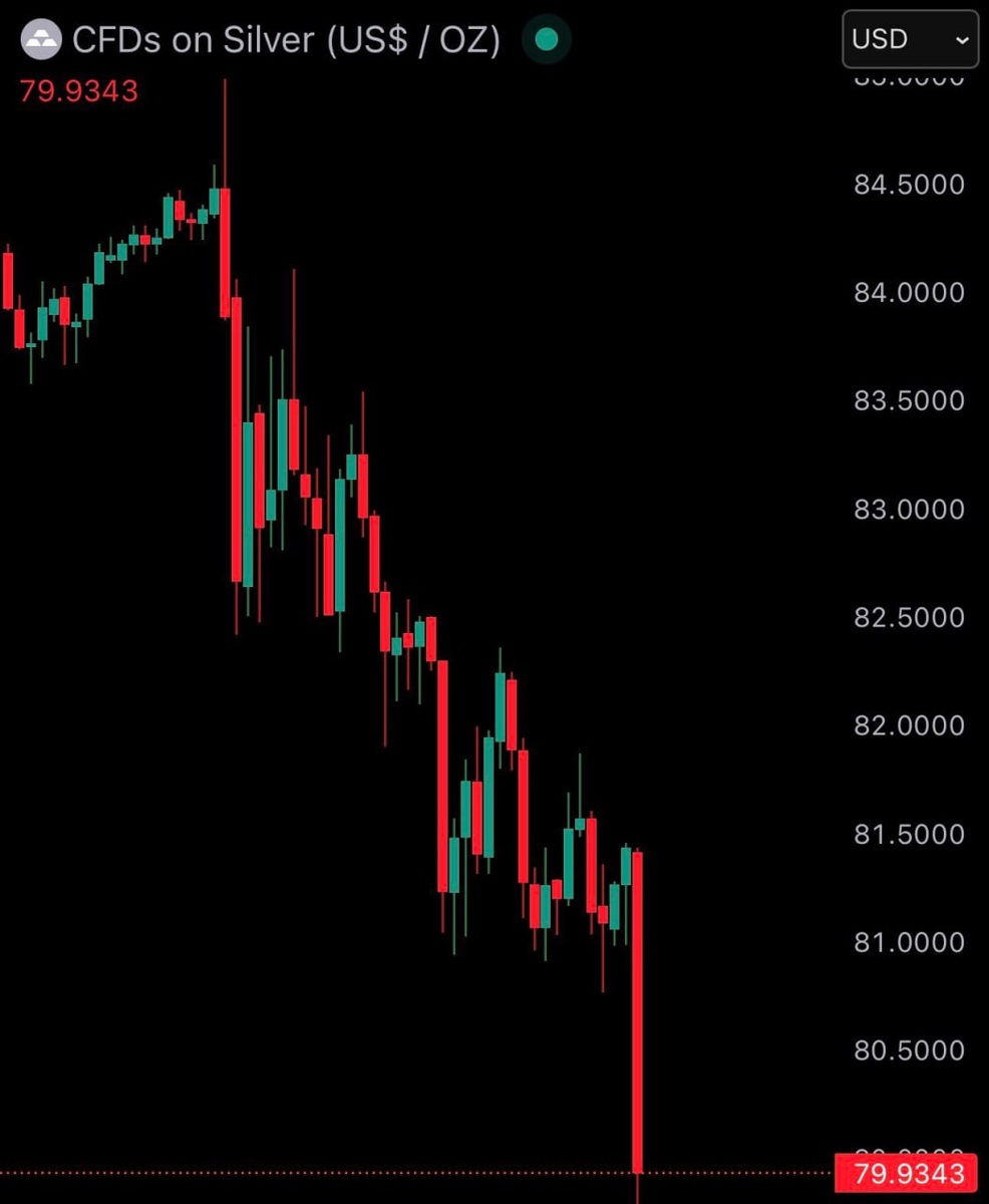 🔸 Серебро упало ниже $80, снизившись более чем на 5