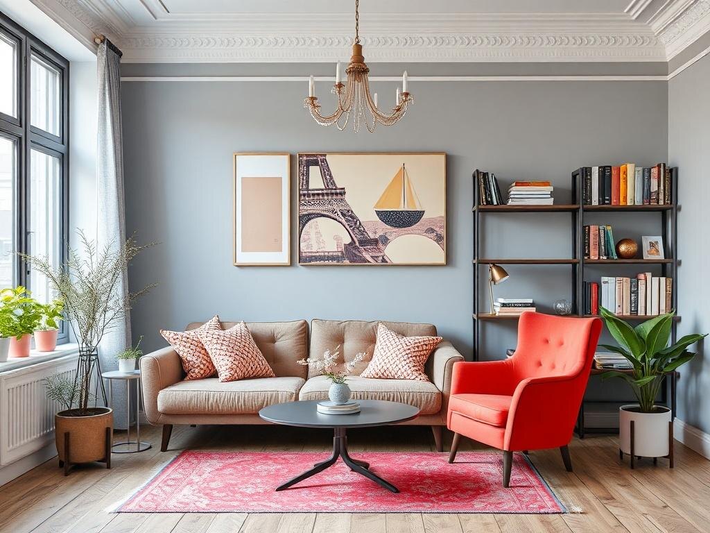 В жилых интерьерах картина сложнее. Спокойная светлая база по-прежнему в почёте, но к ней активно добавляют выразительные детали.