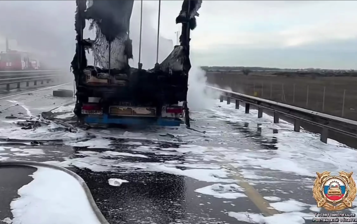 Грузовик сгорел на М-4 «Дон» под Ростовом и перекрыл часть трассы