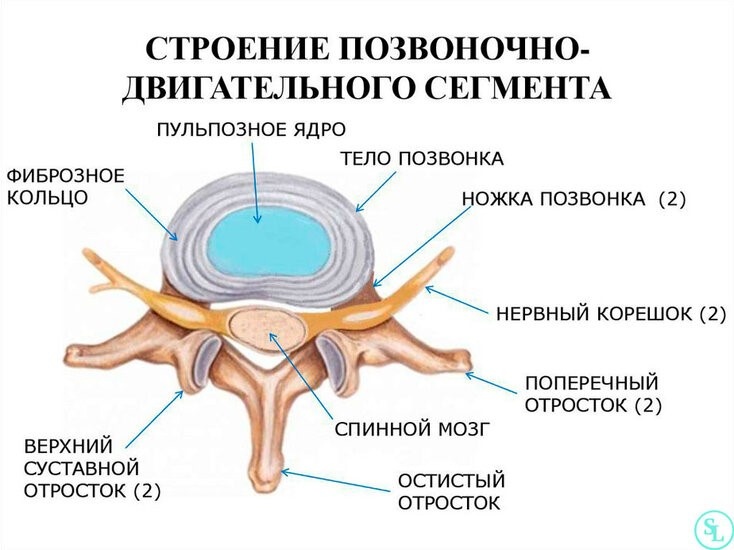 Между нашими позвонками есть специальные прокладки — диски. У каждого диска есть жесткая внешняя оболочка (фиброзное кольцо) и мягкое внутреннее содержимое (пульпозное ядро), похожее на густой гель.