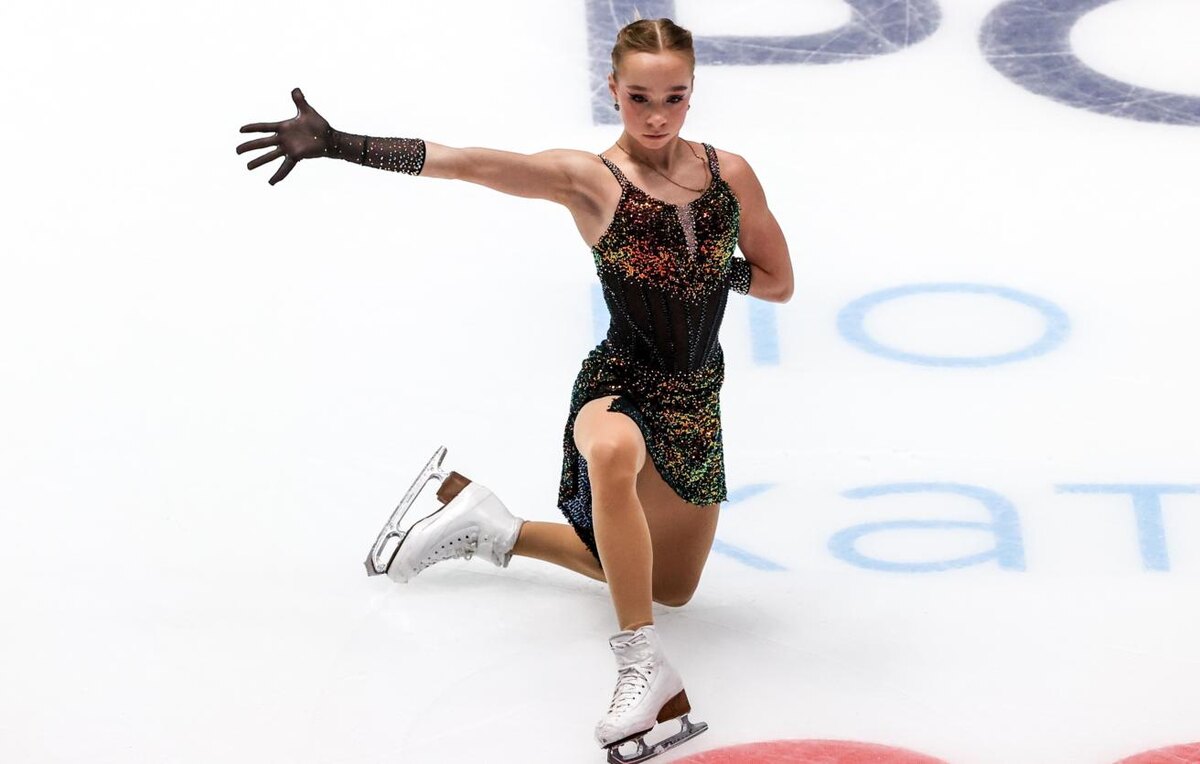 Софья Муравьева. Тренер Алексей Мишин. 3Л+3Т - Q либо галка на тулупе. 3Ф+2А - ошибка на выезде с двойного акселя. Вторая нога на льду. 3С - Q.