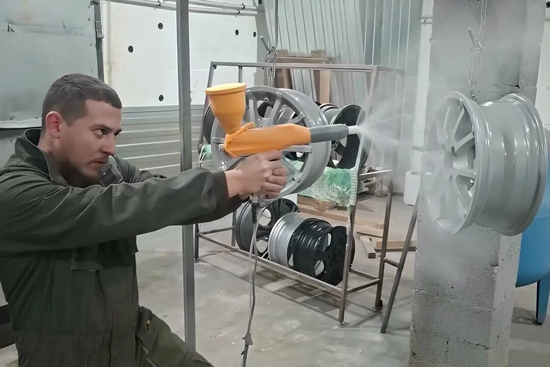 Облезлая краска, потертости, коррозия и даже вмятины на колесных дисках не всегда означает, что их нужно менять на новые. Профессиональная правка, очистка и порошковая окраска позволит вернуть колесам изначальный вид или переделать их цвет на свой вкус. Процесс реставрации колесных дисков начинается с разборки колес. После обычной мойки под высоким давлением каждый диск осматривают для определения его состояния. Облущенная краска и даже коррозия — не проблемы. Гораздо важнее определить наличие механических повреждений. Если их нет — можно сразу переходить к процессу восстановления ЛКП. Если обнаруживаются вмятины, трещины, искривления — сначала оценивается их масштаб. По возможности, целостность и геометрия колесного диска восстанавливаются с помощью сварки аргоном и правки на специальных станках. Первый этап собственно реставрации — погружение диска в кислоту для полного удаления старого лакокрасочного покрытия. Очищенный таким образом до металла и промытый диск отправляется на пескос