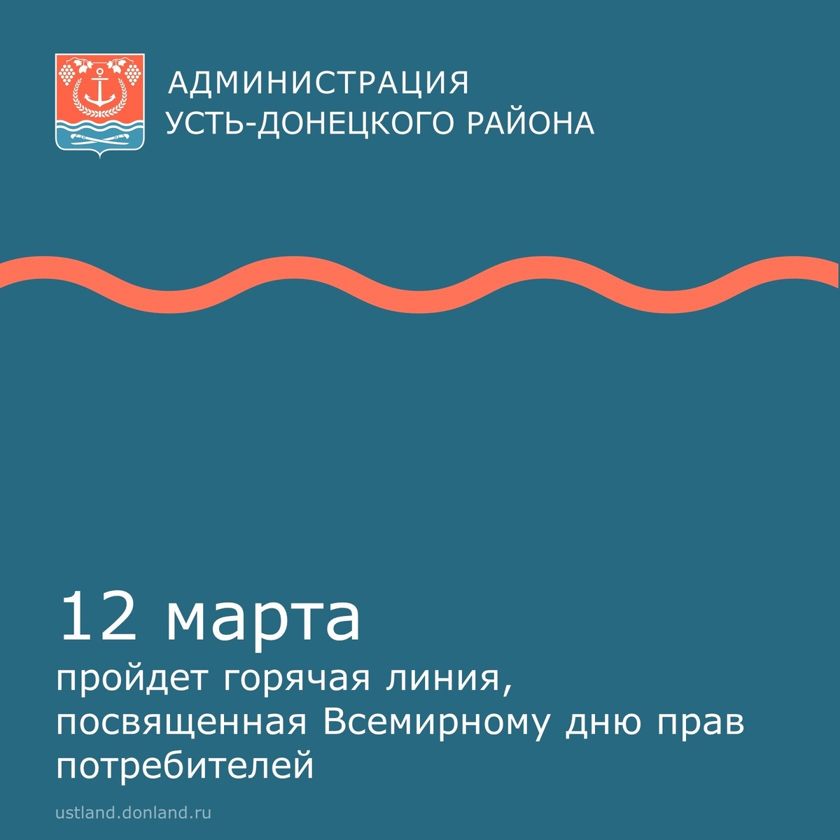 потребительского рынка Администрации Усть-Донецкого района проводит «горячую линию» по вопросам соблюдения потребительского законодательства в сфере торговли, общественного питания и бытовых услуг. Консультацию можно будет получить 12 марта с 10.00 до 16.00 с перерывом с 13.00 до 14.00, по телефону - 8 86351 9-14- 56. #УстьДонецкийрайон #АдминистрацияУстьДонецкогорайона
