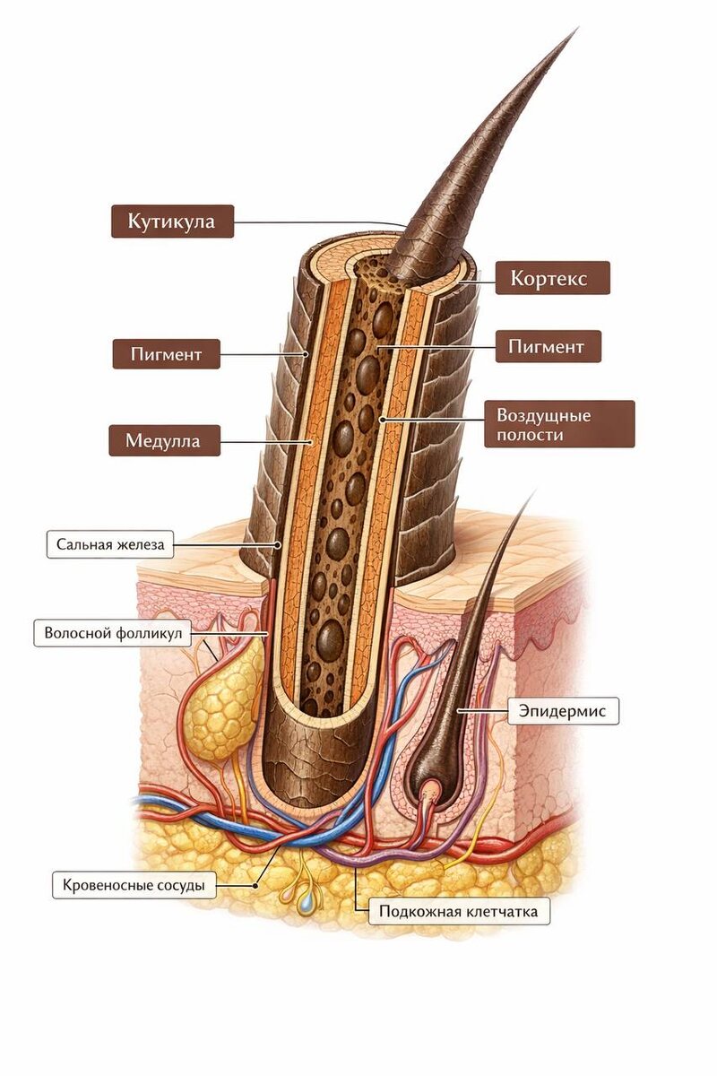 Но всё начинается с строения волоса. В каждом волосе есть три слоя: 1️⃣ Кутикула — защита, блеск, гладкость 2️⃣ Кортекс — главный слой, где формируется цвет 3️⃣ Медулла — внутренний центр, редко влияет на окрашивание Почему это важно? Понимание структуры волоса помогает: • правильно подбирать оксиды и продукты • избежать повреждений при обесцвечивании • прогнозировать результат цвета 💡 Знание волос — фундамент уверенности колориста. Даже базовые ошибки часто происходят из-за незнания структуры волоса. На курсе мы разбираем каждый слой подробно, с фото, схемами и практическими советами.