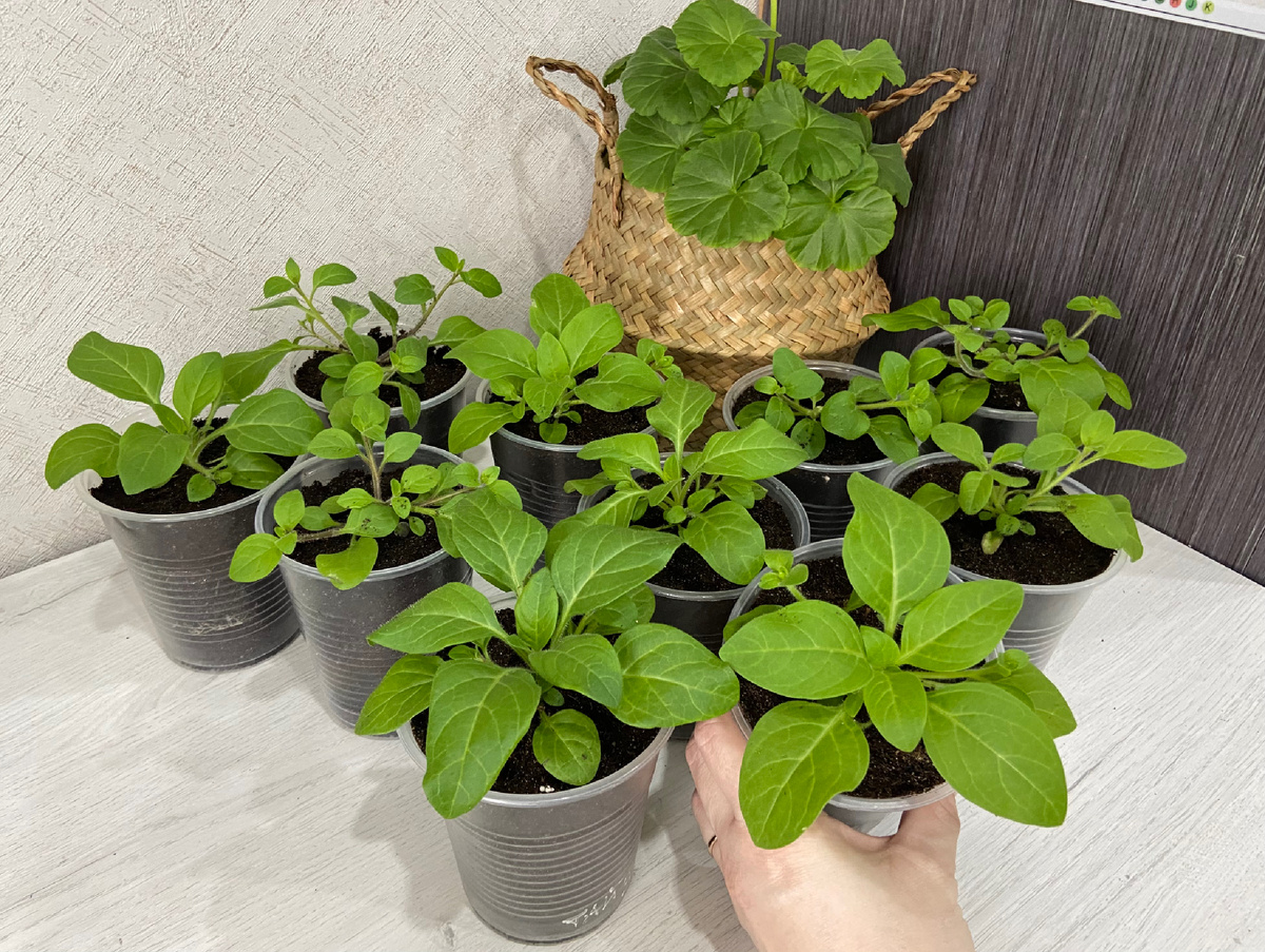 Петуния подросла, пустила боковые побеги и готова к обрезке.
