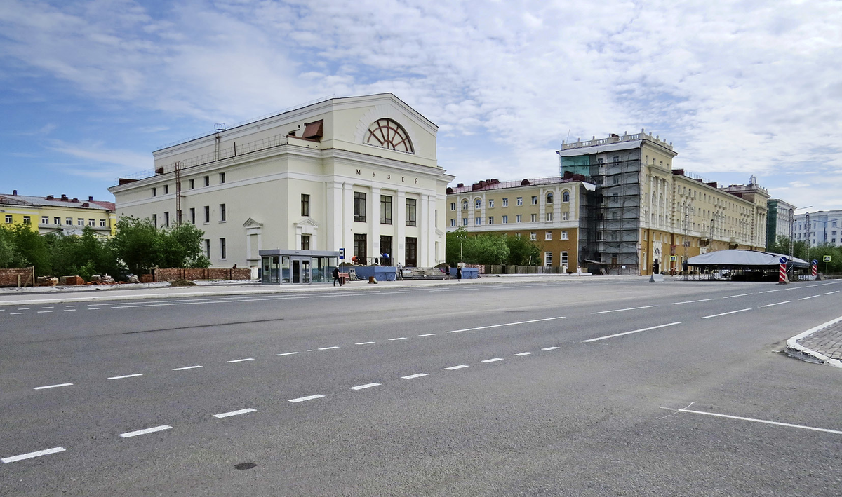 На Комсомольской площади в Норильске высится Кинотеатр имени Ленина (1960)... и ничего, что на нём написано "Музей"!