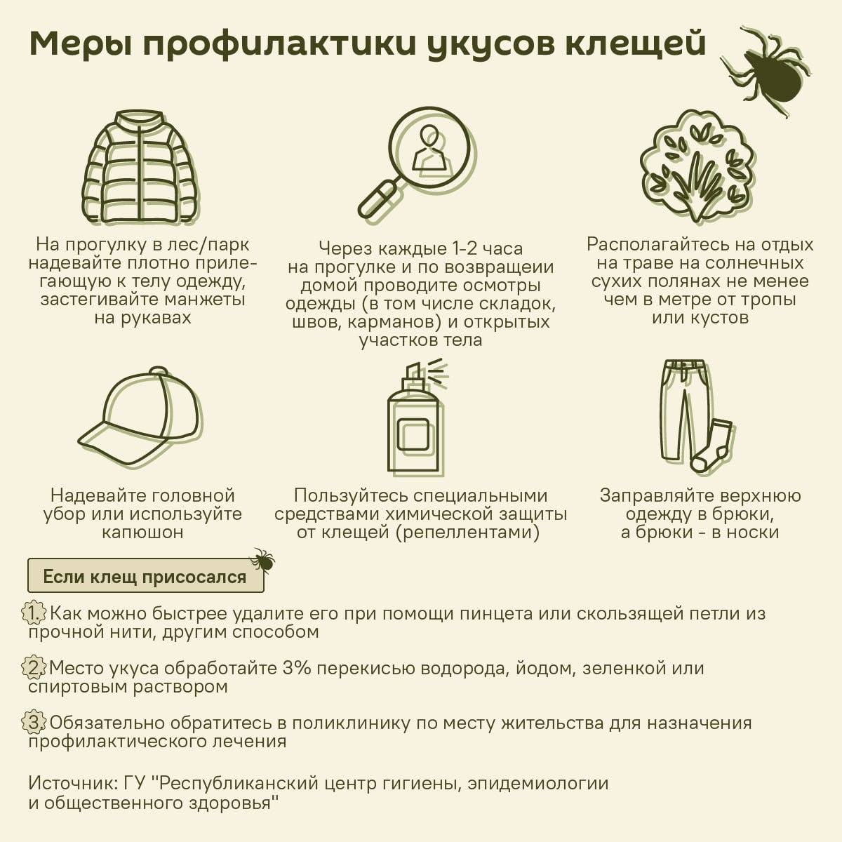 Как уберечься от укусов клещей – полезные советы в инфографике @SPUTNIKBY Эпидемиологи предупреждают, что клещи благополучно перезимовали, несмотря на суровую и снежную зиму, и вот-вот начнут пробуждаться. Сезон активности клещей начинается с первыми по-настоящему теплыми днями, но пик придется на конец мая – начало июня. 🔴 Читайте Sputnik Беларусь в MAX