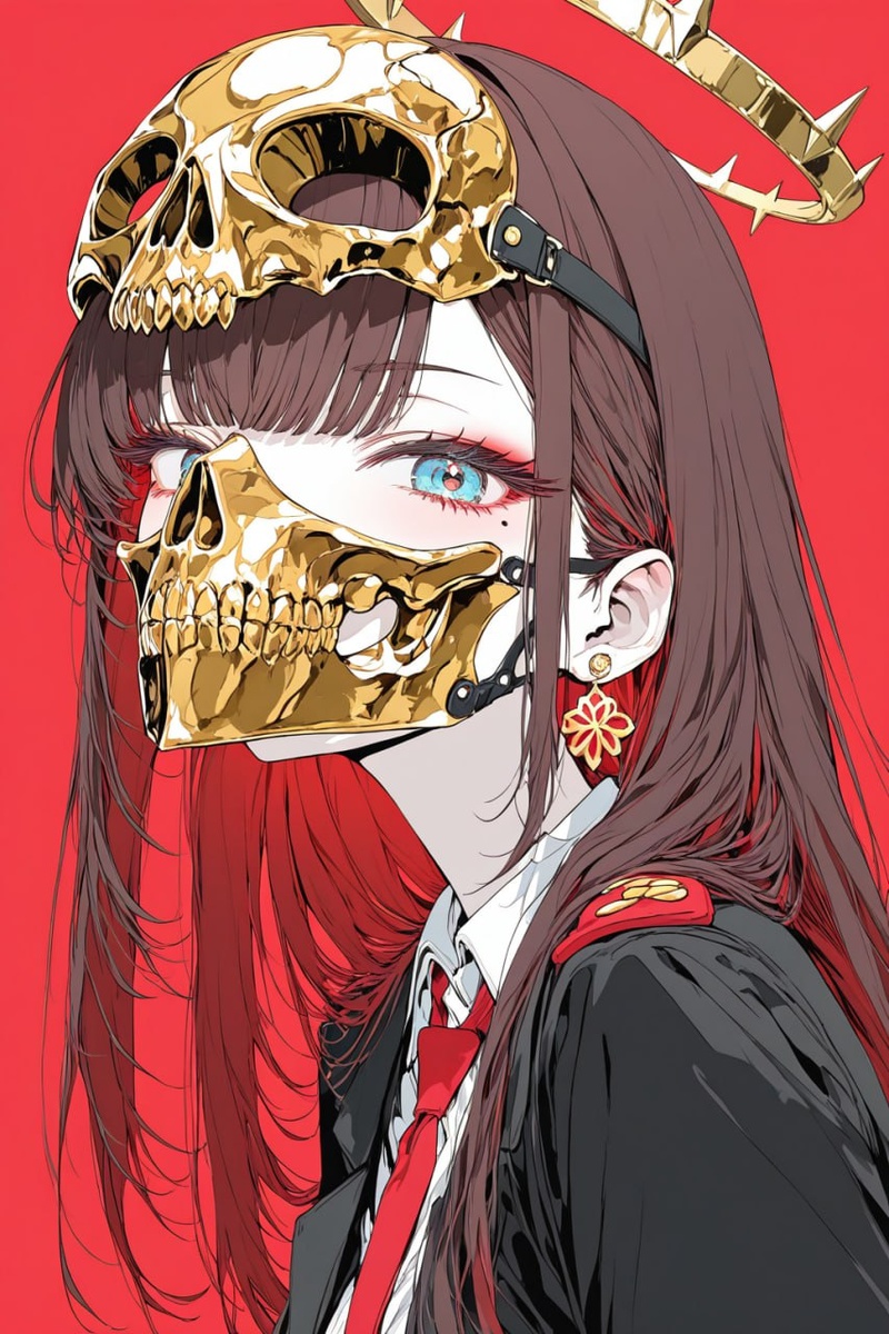 #skull #girl #ai #waifu_Matrix #gold #red #halo #cute #wrong #tongue #O