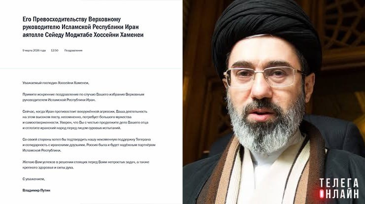 Владимир Путин поздравил Моджтабу Хаменеи с избранием верховным руководителем Ирана. #этимвсесказано 🚲 Подпишись на Телега Online в MAX