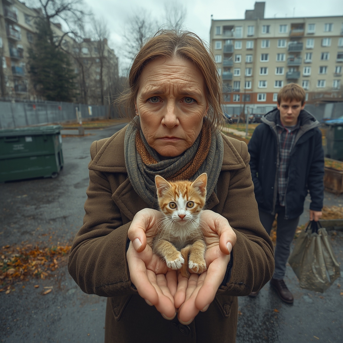 У подъезда она увидела, как мальчишки-подростки что-то пинают возле мусорных баков. Она бы и прошла мимо — не её дело, мало ли — но один из них засмеялся как-то нехорошо, и она всё-таки остановилась.