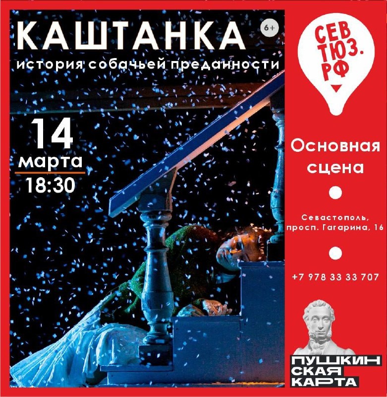» Есть в литературе особенные произведения. В них автор задаёт вопросы, а не отвечает на них. Одна из таких историй – повесть «Каштанка» Антона Павловича Чехова. До сих пор читатели разгадывают её финал. Почему Каштанка ушла из цирка, в котором обрела тепло, ласку и новых друзей? Что заставило её вернуться к старым хозяевам? Давайте искать ответ вместе. 👉 Когда? 14 марта в 18:30, Основная сцена 👉 Принимаем оплату Пушкинской картой. 👉 Касса: +7(978)333-37-07 Онлайн-касса 24/7 ✨Давай сходим, Севастополь | Читайте и смотрите нас в МАХ