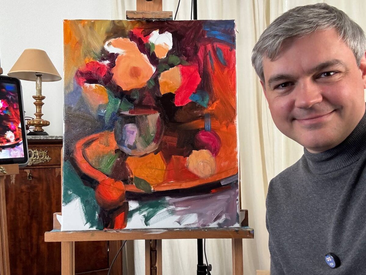 Стартуем, интенсив «Свет белых роз». Ух и не просто будет ученикам ☺️, максимальная абстракция мазка и микс мешаных и открытых цветов!