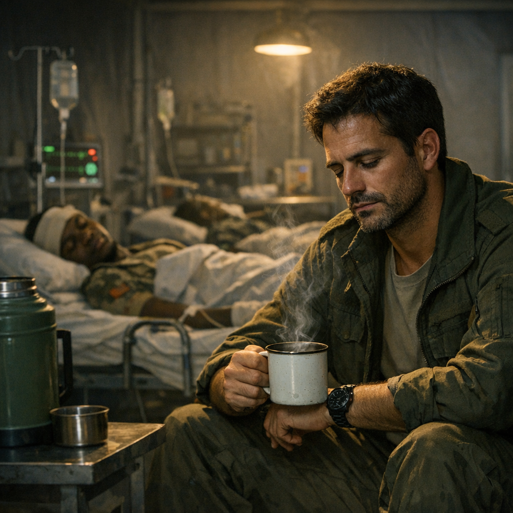 Испанец натянул куртку, сунул ноги в берцы, не зашнуровывая, и бесшумно выскользнул наружу, прикрыв за собой дверь. Ночное небо простиралось над базой, застывшее в своем величии и поразительной, какой-то космической красоте. Миллионы звезд, крупных и мелких, мерцали так ярко, что создавали призрачный свет, какого не увидишь ни в одном городе. Млечный путь протянулся неровной, искрящейся аркой, и при этом сиянии было отлично видно очертания соседних модулей, темные громады вертолетов на площадке и даже флаг, безвольно повисший на флагштоке. Рафаэль задержался на минуту, запрокинув голову, вглядываясь в эту бездонную глубину, пытаясь отыскать знакомые созвездия, потом глубоко вздохнул и направился к медчасти.