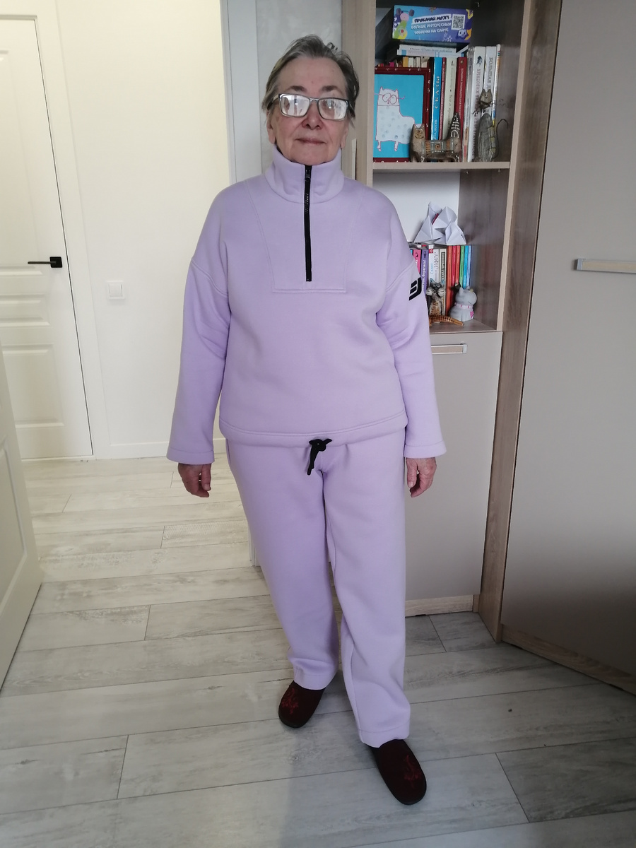 Маме сшила костюм из тёплого футера. Я раскроила его три года назад, для себя. Но шить его было некогда, и вот месяц назад после очередной ревизии под кроватью, я решила, что дошью и подарю маме. Ей сейчас по весне самое оно гулять в нем. Маме очень понравился цвет и фасон, сказала, что теперь ей нужны кроссовки под него. Выберем момент, чтобы сходить вместе в Спортмастер.