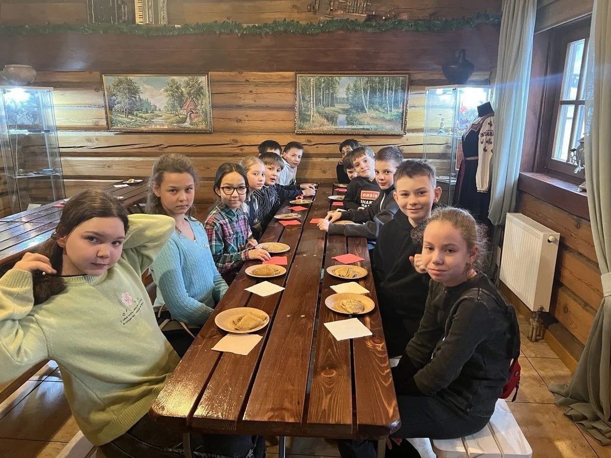 Ученики 4-А класса посетили музей "Живая история", где приняли участие в увлекательной фольклорной программе "В гостях у Купчихи".