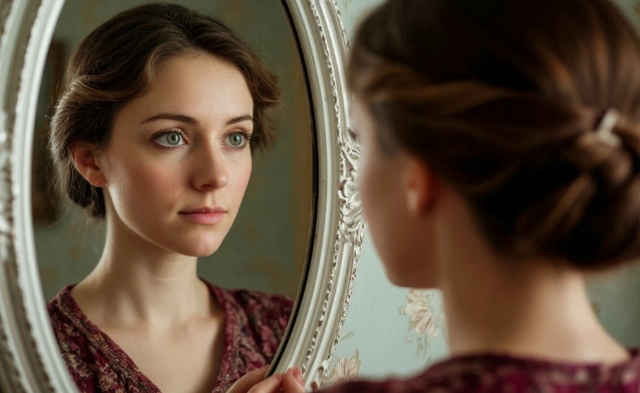 Дома Катя сняла обувь, прошла в спальню и автоматически села перед зеркалом.