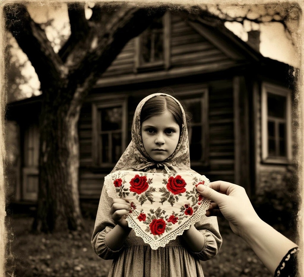 Я выключила телевизор и долго сидела в темноте. Шум дождя заполнил комнату. Мысли путались: что это было? Совпадение? Просто похожий узор? Таких платков ведь много. Но я точно знала, что бабушка вышивала только для себя, никогда не дарила, и рисунок придумывала сама. Я встала, подошла к комоду, выдвинула ящик. Салфетка лежала на месте, аккуратно сложенная. Я развернула её, включила настольную лампу. Красные розы на синем, нитка к нитке. Точно такие же.