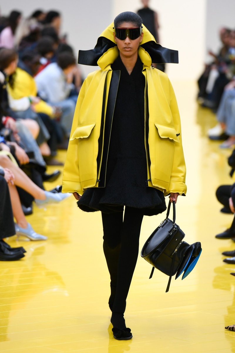 Дизайнеры сохранили узнаваемую эстетику своего авторского почерка, значительно дистанцировавшись от наследия Джонатана Андерсона десятилетней давности. Здесь присутствуют характерные гипертрофированные формы, приближающиеся к архитектурному стилю, однако дальнейшее сравнение неуместно. Центральными элементами стали элегантные пальто и бомбёры, выполненные из ярких оттенков кожаных материалов, мастерски демонстрирующих умение команды обращаться с кожей.