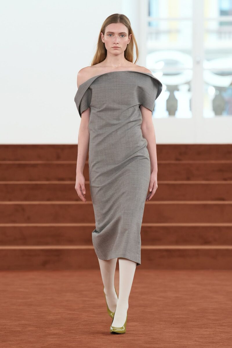 Происходит магия. Платье, которое пять минут назад висело нейтральной тряпкой, вдруг собирается. Появляется конструкция. Лоферы придают низу вес, устойчивость. Они убирают всякий намек на «платьишко», на легкомыслие, на попытку казаться девочкой.