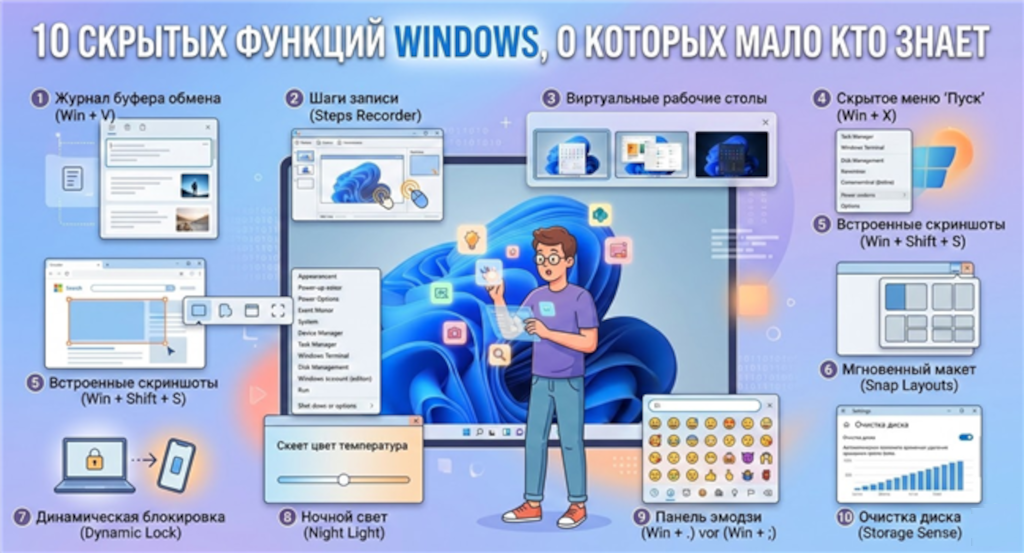 Операционная система Microsoft Windows установлена на миллионах компьютеров по всему миру. Большинство пользователей используют её каждый день: открывают браузер, запускают программы, работают с файлами и документами. Однако далеко не все знают, что в системе скрыто множество полезных возможностей, которые могут значительно упростить работу за компьютером.