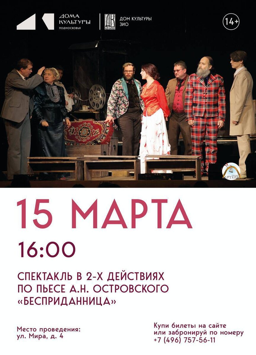 ✨ Афиша: Спектакль «Бесприданница» А.Н. Островского Красивая и горькая история о любви и надежде, предательстве и коварстве, давно произошедшая на волжских берегах, продолжает трогать души зрителей и сегодня. ⏳ Продолжительность: 2 часа с антрактом 🌟 В ролях: Юлия Богомазова, Елена Крумина, Надежда Закора, Максим Старков, Вячеслав Логинов, Александр Боголапов, Максим и Михаил Огоньковы, Никодим Зубков 🎬 Режиссёр — Заслуженный работник культуры Ольга Огонькова 🚫 Возраст: 14+ 📆 15.03.2026 🕒 16:00 🏢 ДК ЗИО 📍 г. Подольск, ул. Мира, 4 🔗 Напишите нам: https://clck.ru/3RvH4B ⭐Поддержать канал голосом 🍰Где поесть в Подольске ✅ Мероприятия Подольск https://dzen.ru/id/66ed500f7b5671493eca3fd6 https://vk.ru/podolsk_events http://dzen.ru/podolsk_events