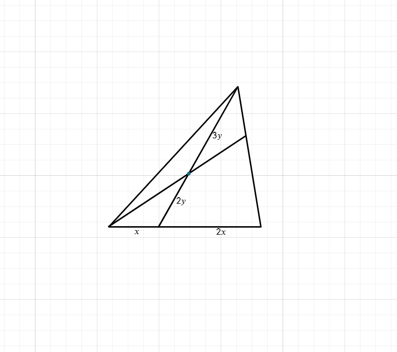 6. В треугольнике 𝐴𝐵𝐶 площади 10 проведены два отрезка 𝐴𝐿 и 𝐵𝐾 от вершин 𝐴 и 𝐵 до противоположных сторон, пересекающиеся в точке 𝑃. Известно, что 𝐴𝐾 ∶ 𝐾𝐶 = 1 ∶ 2, 𝐾𝑃 ∶ 𝑃𝐵 =2 ∶ 3. (а) Найдите площадь треугольника 𝐴𝑃𝐶. (б) отношение 𝐴𝑀 ∶ 𝑀𝐵, где 𝑀 – точка пересечения 𝐴𝐵 и 𝐶𝑃.