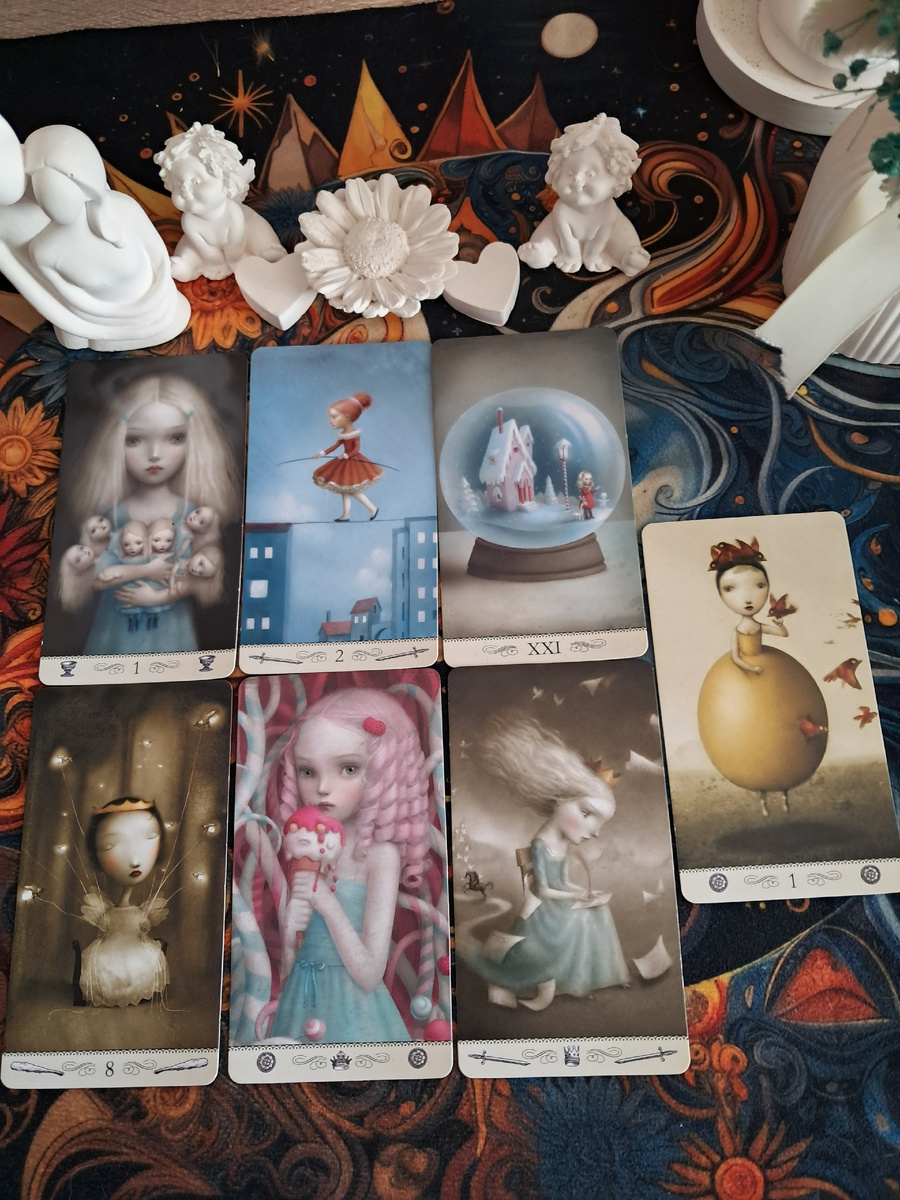 Он решил быть с тобой. Его сердце открыто (Туз Кубков), сомнения позади (2 Мечей), старые циклы завершены (Мир), и он уже движется к тебе (8 Жезлов). Он видит в тебе идеальную женщину – заботливую и умную (Королевы Пентаклей и Мечей). Итог – прочный союз на годы (Туз Пентаклей).