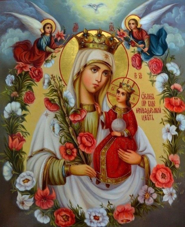 Влады́чице Преблагослове́нная, возьми́ под Сво́й покро́в семью мою́. Всели́ в сердца́ супру́га моего́ и ча́д на́ших ми́р, любо́вь и непрекословие всему́ до́брому; не допусти́ никого́ из семьи́ мое́й до разлуки и тя́жкаго расставания, до преждевременныя и внеза́пныя сме́рти без покая́ния. А до́м на́ш и все́х на́с, живу́щих в не́м, сохрани́ от о́гненнаго запале́ния, воровскаго нападе́ния, вся́каго зла́го обстоя́ния, разнаго страхова́ния и диа́вольскаго наважде́ния. Да и мы́ ку́пно и разде́льно, я́вно и сокрове́нно бу́дем прославлять и́мя Твое́ Свято́е всегда́, ны́не и при́сно, и во ве́ки веко́в. Ами́нь.