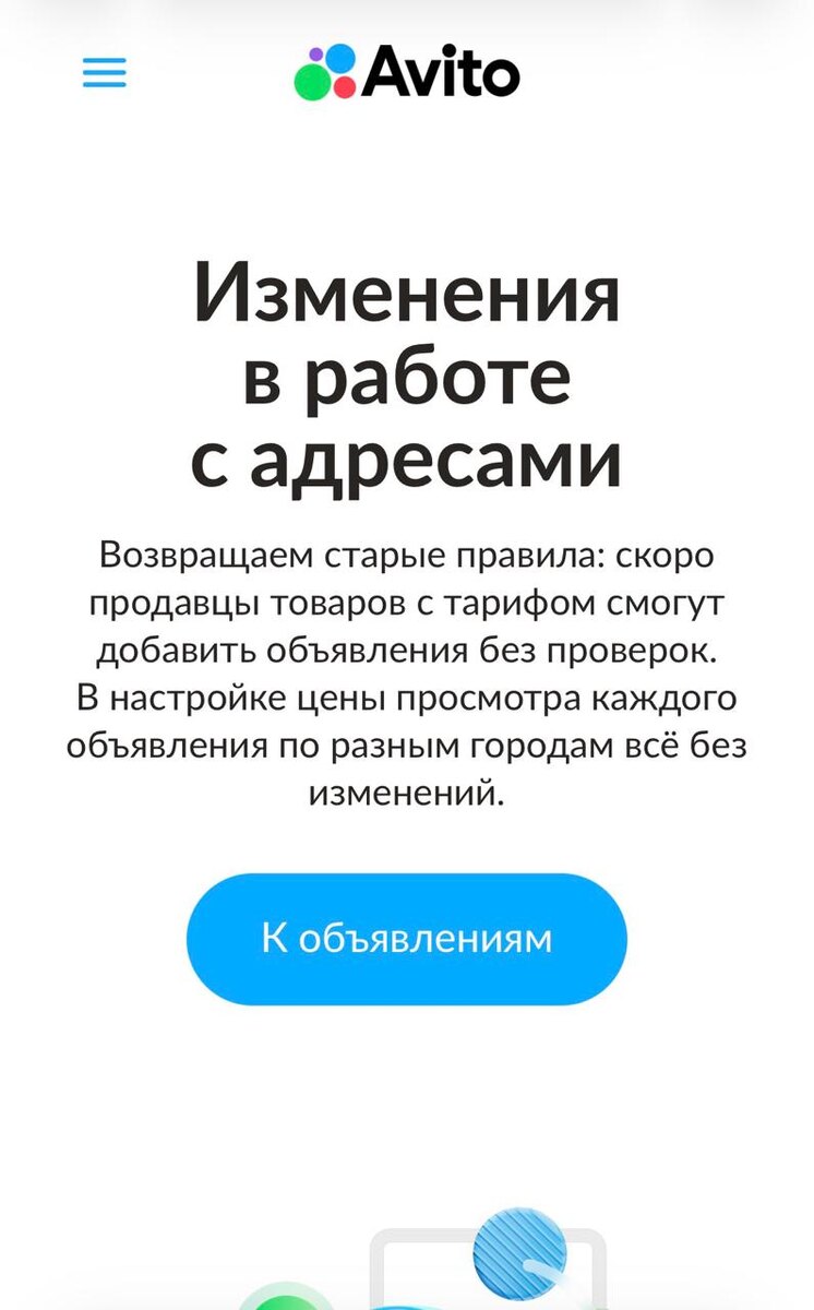 ? Если в пылу праздников вы не заметили — произошло важнейшее событие! Впервые на нашей памяти площадка откатывает свои же новые правила под давлением общественности. Пока конкретики нет, но по словам Авито "скоро" подтверждение адресов в "Товарах" уберут. Продолжаем наблюдать😵💫