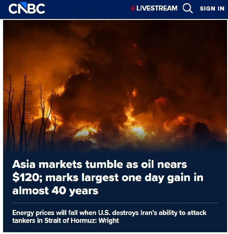 Нефть скакнула в район $120 за баррель, показав самый сильный однодневный рост почти за 40 лет. В последний раз котировки нефти находились так высоко в 2014 году.