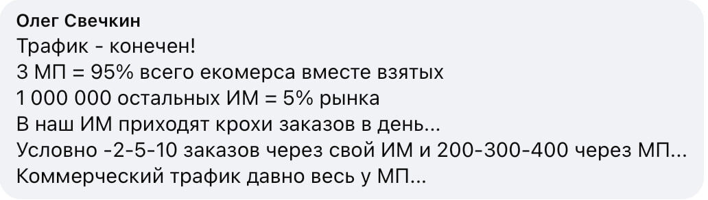 Это да, но вот я тут искал камеру, цена около 5к на МП. И если бы я нашел на собственных Инет- магазинах селлеров эту же камеру, скажем, за 3к - заказал бы с доставкой ПВЗ Озона, например.