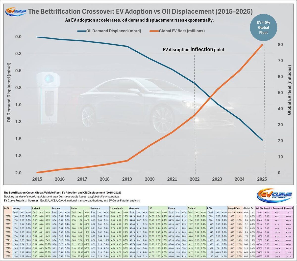 - Мировой спрос на нефть из-за электромобилей снизился примерно на 1.500.000 баррелей в день (мбд)