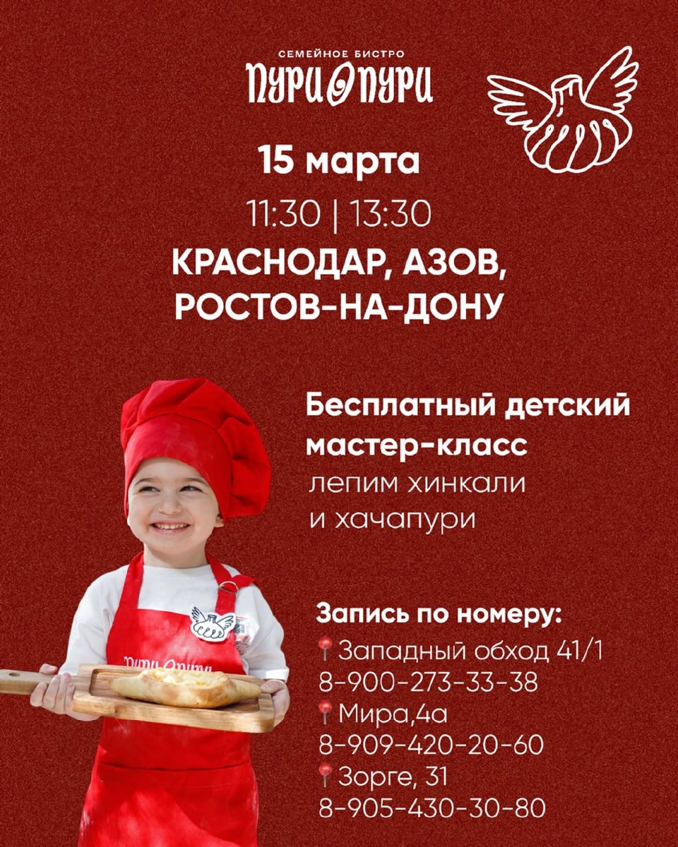 Бесплатный детский мастер-класс - лепим хинкали и хачапури в ПуриПури