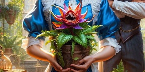 Самый прикол. Платон решил подарить Настеньке букет, и выбрал венерину мухоловку в горшке. И Атрокс с картинки влюбился в красавицу и появилась у него мечта опылить красавицу. Там вообще с этим злобочком много чего было интересного и смешного до упаду.