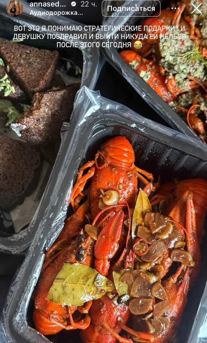 Анна Седокова похвасталась своим подарком на 8 Марта - вместо цветов она получила сет вареных раков с чесноком и гренками