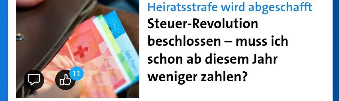 : " Швейцарские избиратели приняли с примерно 54 % голосов «за» решение о том, что теперь каждый человек, независимо от семейного положения, будет облагаться налогом отдельно. Таким образом, швейцарская налоговая система претерпела фундаментальные изменения. Вот основные моменты: Ранее женатые пары и однополые партнеры в зарегистрированном партнерстве облагались налогом совместно. Если оба супруга работали, они иногда платили больше налогов, чем пары, живущие в гражданском браке с раздельной декларацией — это называлось «налоговым штрафом за брак». В некоторых случаях совместное налогообложение могло быть выгодным («бонус за брак»). Также существовали вычеты для женатых и работающих пар. По данным федерального совета, около 610 000 пар сталкивались с «налоговым штрафом за брак», а примерно 670 000 пар имели налоговые привилегии. Что меняет новый закон? Каждый гражданин теперь платит налог индивидуально. Доход и имущество учитываются отдельно. Супругам придется подавать две о