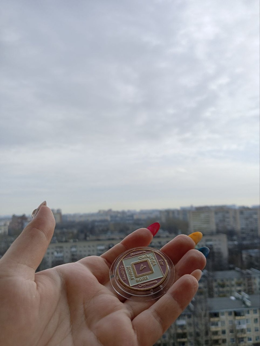 Её подарил мне мой друг, потому что это - свидетельство моих 5 лет трезвости В 12 лет я пообещела себе, что никогда не буду пить, а в 19 начала со смертью любимого дедушки Сначала это были невинные посиделки - ну кто не тусил в студенчестве? Но спустя 5 лет я достигла своего дна - события, после которого алкоголики обычно и идут лечиться, потому что хуже уже некуда 7 марта 2021 года я написала психиатру, что я хочу вылечить 3 вещи - бессоницу, высокую тревожность и алкоголизм (я хотела найти хоть какой-то внешний повод себя ограничить в употреблении) Пришла на прием с волнением и ушла с рецептом на антидепрессанты, закончила лечение через год На тот момент я уже 3 года ходила к психологу и это естественно очень помогло Конечно, у этого есть последствия в виде триггеров и я рада, что квартира, в которой я сейчас живу, чиста от них С алкоголем же закончилась и история с курением сигарет В 12 шаговую программу я пришла далеко не сразу и пробыла там ровно столько, сколько мне хватил