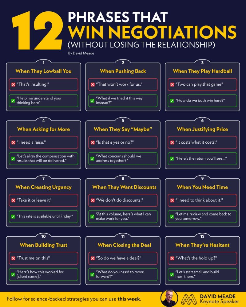 ✅ «Как мы можем прийти к выгоде для обоих?» ❌ «Мне нужно поднять зарплату».