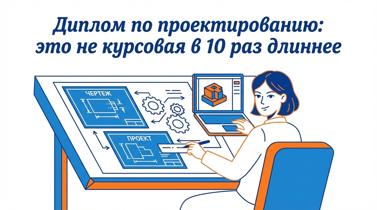 Диплом по проектированию — это реальная инженерная задача. Задание даёт параметры, ты выбираешь решение, обосновываешь его расчётами и показываешь чертежами. Комиссия оценивает не объём текста, а логику принятых решений и корректность расчётов.