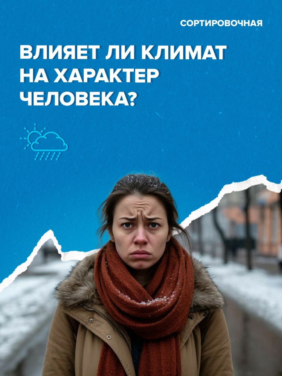 ? Существует теория, что климатические условия влияют на образ жизни и психологическое состояние людей, формируя культурные особенности и адаптивные механизмы. Предполагается, например, что низкие температуры вызывают депрессивные состояния из-за нехватки света. ▶️ Больше интересных фактов и теорий обсудили в подкасте Сортировочной: 😄 Смотреть в VK Видео 😉 Смотреть на YouTube Подпишись — будь на зелёной стороне | Сортировочная в MAX