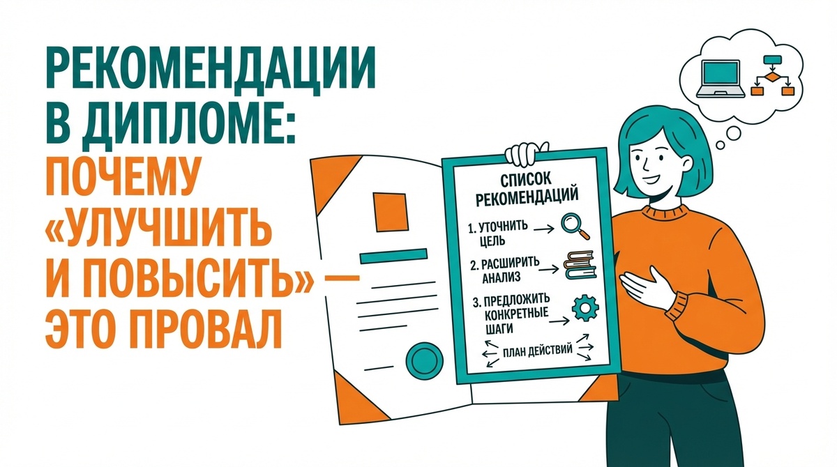 Раздел рекомендаций в дипломной работе — один из самых недооценённых. Студенты тратят недели на теорию и практику, а рекомендации пишут за вечер, в стиле «надо бы улучшить, стоит развить, целесообразно повысить». И именно на них получают замечания на защите.