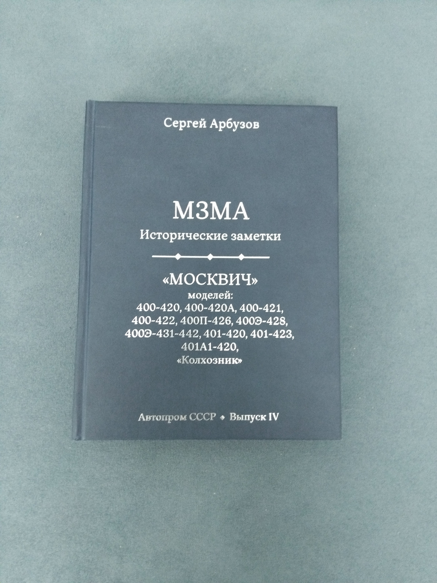 Примерно где-то в январе 2026 года вышла книга Сергея Арбузова «МЗМА. Исторические заметки. Москвич моделей: 400-420, 400-420А, 400-421, 400-422, 400П-426, 400Э-428, 400Э-431-442, 401-420, 401-423, 401А1-420, 《Колхозник》. Это 4 выпуск из серии «Автопром СССР», что указано на обложке книги.