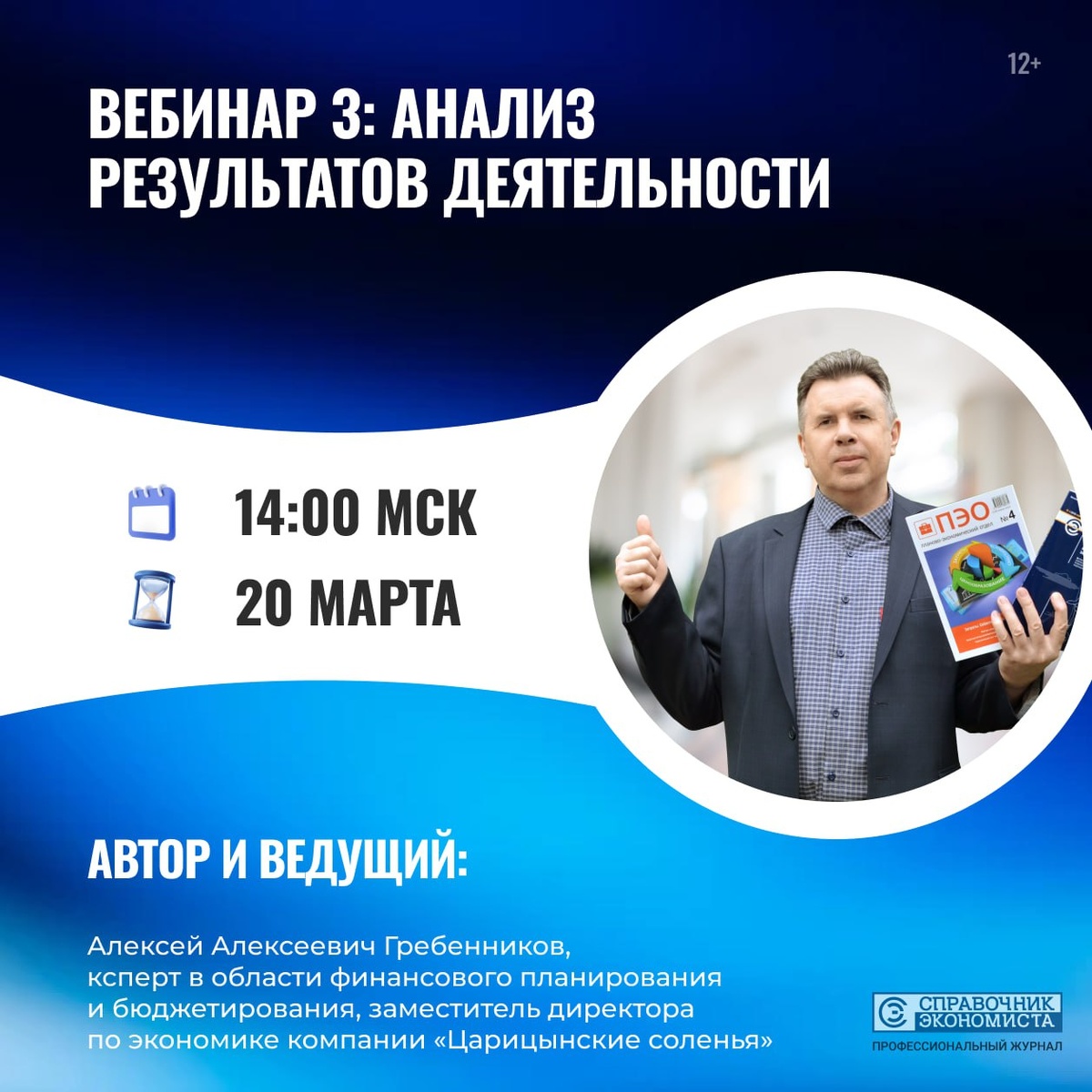 Участие для подписчиков журналов «Справочник экономиста» и «Планово-экономический отдел» БЕСПЛАТНО. Программа вебинара: ✅ Анализ динамики показателей результатов деятельности компании. ✅ Анализ эффективности деятельности компании. ✅ Анализ выполнения KPI деятельности компании. ✅ Анализ эффективности бизнес-процессов компании. ✅ Анализ хода выполнения стратегии развития компании. 👉 Присоединиться можно здесь: Ссылка 1 Ссылка 2
