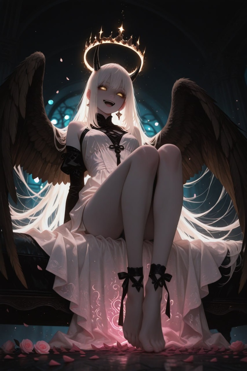 #angel #demon #wings #halo #ai #anime #cute #awa #waifu_matrix #girl #whitehair #nice