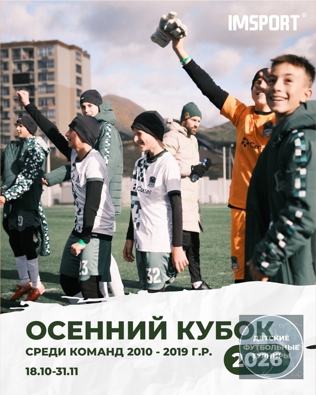 ! 📅 Даты проведения: 18 октября – 31 ноября 2026 года 📍 Место проведения: Геленджик 👥 Участники: команды 2010-2019 годов рождения Этапы турнира: - 18.10-22.10 (2018, 2019 г.р.); - 23.10-30.10 (2017 г.р.); - 31.10-07.11 (2013, 2016 г.р.); - 08.11-15.11 (2014, 2015 г.р.); - 16.11-23.11 (2011, 2012 г.р.); - 24.11-31.11 (2010 г.р.) • проживание участников в здравнице «Кабардинка»; • питание по системе «шведский стол»; • трансфер до стадиона; • фото и видео съемка; • награждение призеров и участников соревнований; • экскурсионная и развлекательная программа программа 📌 Контактная информация для подачи заявок и уточнения деталей: Телефон: +7(918)421-77-47 Владимир Электронная почта: imsportteam@mail.ru --- #ФутбольныйТурнирОктябрь2026 #ФутбольныйТурнирНоябрь2026 #ФутбольныйТурнирЮгРоссии2026 #ФутбольныйТурнирКраснодарскийКрай2026 #ФутбольныйТурнирГеленджик2026 #ФутбольныйТурнирГеленджик2010гр #ФутбольныйТурнирГеленджик2011гр #ФутбольныйТурнирГеленджик2012гр #ФутбольныйТурнирГеленджик